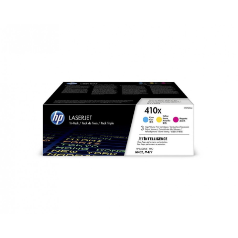 1 kép HP 410X 3 darabos nagy kapacitású LaserJet tonerkazetta ciánkék/bíbor/sárga (CF252XM)