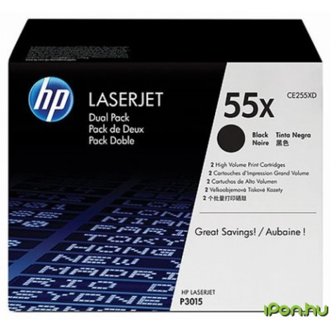 HP CE255XD black fekete Dual Pack eredeti toner, 25000 oldal. Kompatibilis nyomtatók : - LaserJet Enterprise P3015 - LaserJet Enterprise P3015d - LaserJet Enterprise P3015dn - LaserJet Enterprise P...