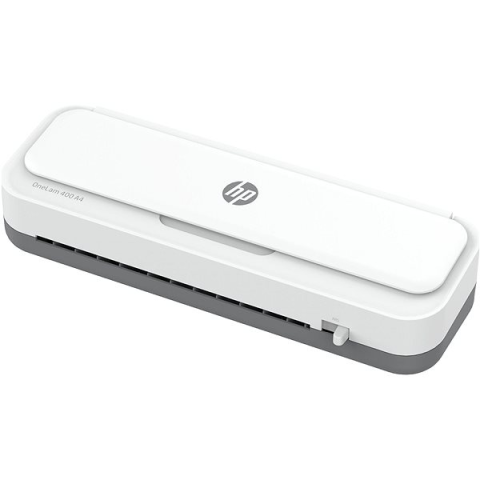 Laminálógép - A4 formátumhoz, maximum 0,5 mm vastagságú dokumentumokhoz alkalmas, dokumentumok, iratok, névjegykártyák és fényképek laminálásához, rés szélessége 230 mm, max. 2×125 mikron vastag fóliához, felmelegedési ideje 2 perc, 400 mm/perc laminálási sebesség, mérete 8,1 × 38 × 12,3 cm (hosszúság × szélesség × mélység), tömege 1350 g Kompakt A4-es laminálógép.HP OneLam 400 A4 laminálógépKompakt laminálógépet keresel sokoldalú felhasználásra?