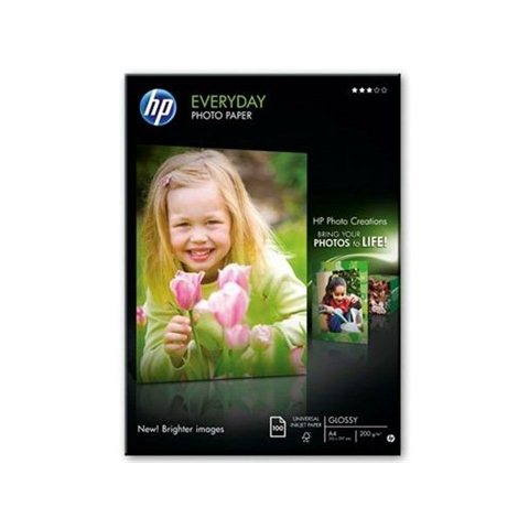 Fotópapír - 100 lap, formátum: 21 × 29,7 cm (A4), tintasugaras nyomtatóhoz, fényes, anyagsűrűség: 200 g/m2 A HP normál fotópapírral alacsony költséggel nyomtathatja ki hétköznapi színes fényképeit. Ez az újrahasznosítható, fényes papír gyorsan szárad és bármelyik tintasugaras nyomtatóval használható. A HP
