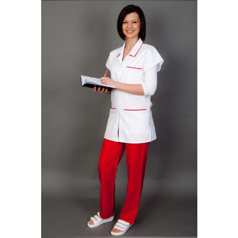 1 kép HT FEHÉR KÖPENY ENYHÉN KARCSÚSÍTOTT, PIROS PASZPOLLAL 603