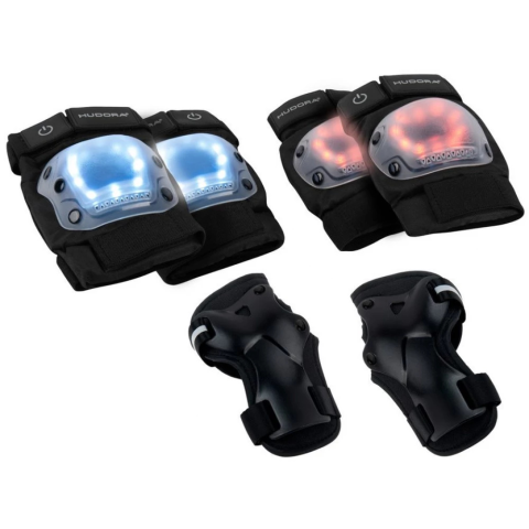 - 83010/00 Csukló és dérdvédők LED-es - S méret - Szín: fekete - 4 db CR2032 elem tartozik hozzá - A könyökön piros figyelmeztető lámpa visszafelé és oldalra világít / Fehér fény a térdeken