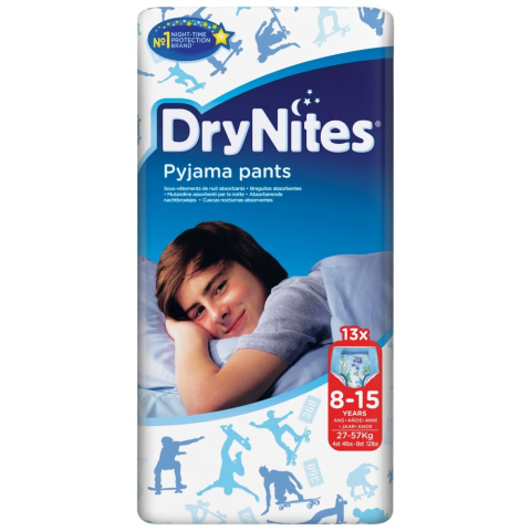 1 kép Huggies Drynites éjszakai pelenka 8-15 éves korú fiúnak (27-57 kg)