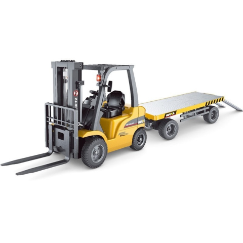 Próbáld ki milyen egy targoncát irányítani pótkocsival Ez a 10 csatornás Huina távirányítós targonca remek ajándék lehet azok számára, akik szeretik a különleges RC gépeket. A szettben található egy pótkocsi is a targoncához. Fémből készült így rendkívül strapabíró és a kinézete is valósághű. A modell irányítható előre-hátra és tud fordulni jobbra és balra, ezen kívül pedig fel lehet emelni és le lehet engedni távirányítással a villákat, ille