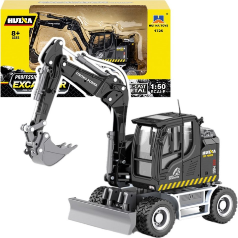 Huina Kerék Kotrógép Dózerrel Fémfekete 1_50 (22764) autópálya és játékautó 1 kép