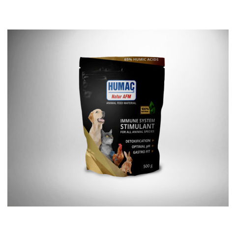 Humac Natur AFM 500 g – természetes huminsav por házi kedvenceknek az immunrendszer támogatására, méregtelenítésre és a bélflóra egyensúlyáért. 100% oxi-humolit alapanyag, legalább 65% huminsav tartalommal. Természetes immunerősítő háziállatoknak – Hu