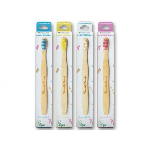 A hagyományos fogkefékkel ellentétben, a Humble gyermek fogkefe nyele 100%-ban biológiailag lebomló, fenntartható termesztésből származó bambuszból készült. A bambusz továbbá természetesen antibakteriális, vagyis termesztése során nincs szükség műtrág