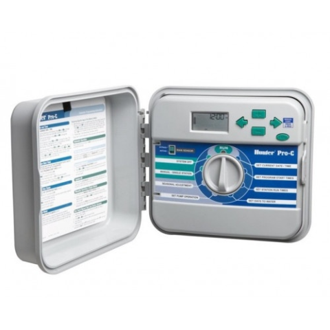 A Hunter PCC kültéri vezérlő szinte mindenben megegyezik a PRO-C vezérlővel, kivéve, hogy a vezérlő nem modul rendszerű, a körök száma nem bővíthető. Naponta többször indítható program, az öntözési napok egymástól független kiválaszthatósága, az egy m