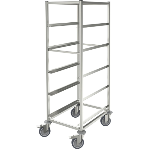 A kocsi kiváló minőségű rozsdamentes acélból készült, stabil, önhordó és higiénikus konstrukcióval rendelkezik. Négyzetprofilú csőkeret, műanyag zárókupakokkal és fixen hegesztett L-alátétekkel a Euro-tartályok hosszanti betöltéséhez.Kétoldalas áthúzásgátlók a DIN EN 18867-2 szerint. 4 darab polietilén taszítókerék szolgál ütközésvédelemként, védve a kocsit körben és az épület falait a sérülésektől. A kocsi 4 kormánykeréken mozog, ebből 2 te