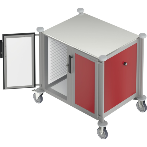 Duplafalú, szigetelt, zárható szállítókocsi alumíniumprofilokból.Egy rekesz hegesztett belső házzal egy kiváló minőségű rozsdamentes acélból készült önhordó vázon. Duplafalú, 270°-ban nyitható ajtó, amely nyitott állapotban mágnesek által rögzített. Az ajtó, valamint a hátsó és oldalfalak különböző RAL színekben választhatók. A belső tér egy rekesszel és rozsdamentes acél oldalfalakra van ellátva, amelyek varrat nélküli mélyhúzott támasztékokk
