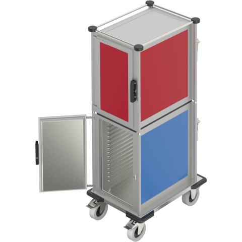 Doppler falú, hőszigetelt, minden oldalról zárt, alumíniumból készült szállító kocsi.Egy rekesz hegesztett belső házzal, prémium rozsdamentes acélból készült, önhordó szerkezetű futóművön. Kétszeresen szigetelt szárnyajtó 270°-ban nyitható, nyitott állapotban mágnessel rögzítve. Az ajtó, valamint a hátsó és oldalfalak különböző RAL színekben választhatók. A belső tér egy rekesszel és rozsdamentes acél oldalfalakkal rendelkezik, amelyeken simán mé