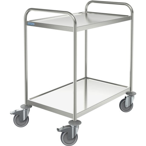 A kocsi stabil, önhordó és higiénikus konstrukcióval rendelkezik, amely kiváló minőségű rozsdamentes acélból készült. Kerek csőkeret ø 25 mm, állandóan hegesztett, mély húzású bordákkal, amelyek 10 mm magas profillal rendelkeznek, hangszigetelt alátámasztással, higiénikusan 35 mm-re meghajlítva és befelé hajtva, tisztításra könnyen használható kivitelben. Kétoldali, a csőkeretbe integrált tolókarok könnyű manőverezhetőséget biztosítanak.4 polietilén