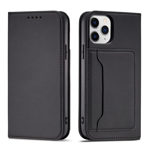 1 kép Hurtel Magnet Card Case tok iPhone 12 tok kártya pénztárca kártya állvány fekete