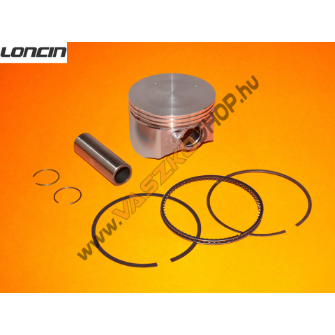 Loncin LCF168F-2 dugattyú szett Gyári cikkszám: 531 14 73-31 + 531 14 73-34 531147331 + 531147334 Méretek: Dugattyú átmérő: Ø 68 mm Csapszeg: 18 x 54 mm Szoknya hossza: 43 mm Dugattyú gyűrű átmérő: Ø 68 mm Gyűrűszélességek: 1 / 1 / 3 mm