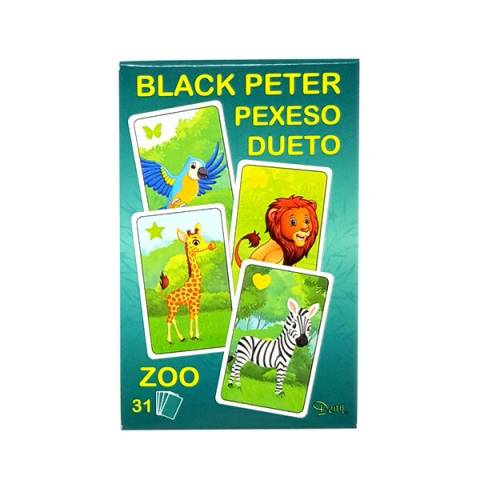 A játék 31 lapból áll, amelyek 15 párra vannak osztva, amelyek mindegyikét azonos karakterrel jelöltük. Csak egy kártya különbözik a többitől, és ez a fekete Péter. Az, aki először fogja a párokat kirakni, az nyer. Akinek a fekete Péter marad az veszí