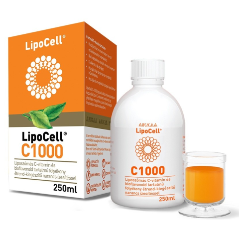 LipoCell C1000 Liposzómás C-vitamint és bioflavonoidot tartalmazó folyékony étrend-kiegészítő narancsos ízben. Hozzájárul az immunrendszer normál működéséhez, csökkenti a fáradtságot és támogatja a keringést. A LipoCell® C-vitamin liposzómákba (mikrosz