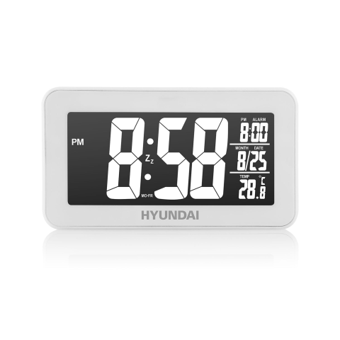 A Hyundai AC321W ébresztő nagyon gyorsan megtalálja a helyét mindenütt, nagy és jól látható LCD kijelzőjén az aktuális idő olvasható le, ami a DCF 77 rádió jel által vezérelt. Az idő megjelenítéséhez 12/24 órás mód választható.