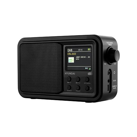 Rádió - klasszikus, hordozható, DAB+ és FM tuner 60 előre beállítható csatorna, 1,2 W teljesítmény, 3,5 mm Jack bemenet, 3,5 mm Jack kimenet, automatikus hangolás, Bluetooth, ébresztőóra, kijelző és óra a csomag része, elemes tápellátás, beépített elem, klasszikus design, mérete 93 × 165 × 50 mm (Ma×Sz×Mé), tömege 0,34 kg, fekete kivitel Hyundai PR 650 BTDAB hordozható Bluetooth rádióA Hyundai PR 650 BTDAB hordozható rádió FM és DAB+ tunerrel van felszerelve