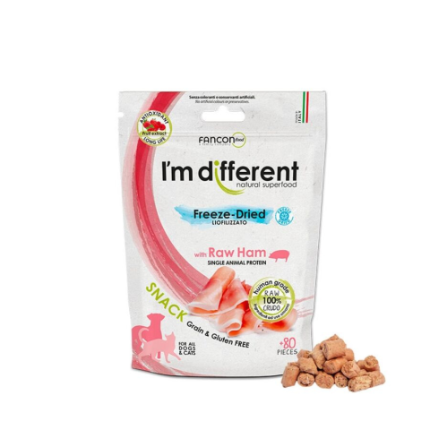 Termékleírás Az I’m Different® célja, hogy kitűjön a emberi fogyasztásra alkalmas minőségű összetevőkből készült fagyasztva szárított kutya- és macskaeledeleivel, amiket olasz emberi élelmiszer-előállító üzemükben állí