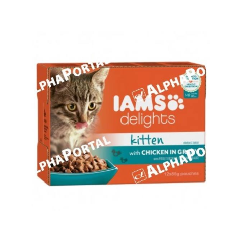 1 kép IAMS Cat Delights Kitten&Junior csirke falatkák ízletes szószban, multipack 12x85g