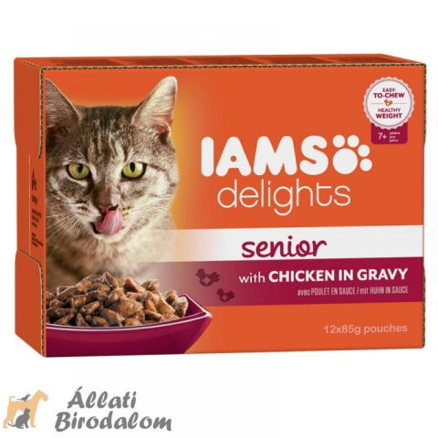 IAMS Cat Delights Senior csirke falatkák ízletes szószban, multipack 12x85g macskaeledel termékleírás