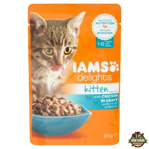 Teljes IAMS Delights Kitten Csirke Falatkák Ízletes Szószban nedves macskatáp 85g termékleírás