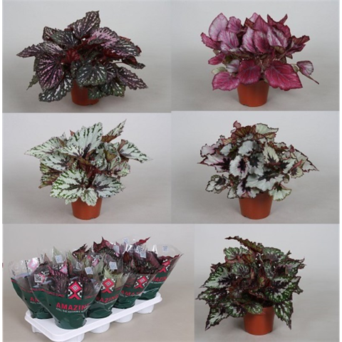 Levélbegónia mix több színben, 12 cm-es cserépben. Növény magassága kb. 35 cm.