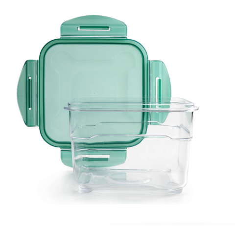Ibili légmentesen záródó élelmiszer-tartály, műanyag, négyzet alakú, átlátszó/zöld
