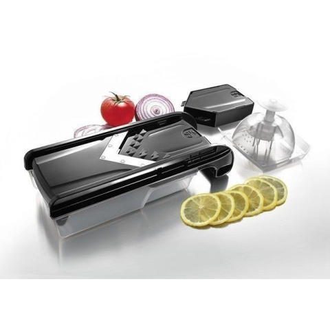 Az Ibili Mandolin szeletelőt nevezhetnénk joggal 6 az 1-ben szeletelőnek is, változtatható szeletelő betétei miatt, melyek lehetővé teszik a konyhában megforduló összes zöldség és számos gyümölcs aprítását. Gyűjtődoboz, kézvédő, élvédők egészítik ki prakt
