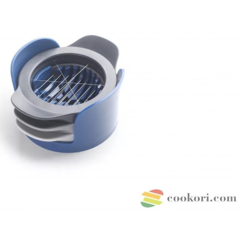 Többfunkciós főtt tojás és gomba szeletelő műanyag testel, fém szeletelő felülettel. A szeletelő felület átmérője 6cm, az eszköz teljes átmérője 11cm. A különféle szeletelők praktikusan egymáson tárolhatók.