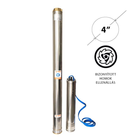 A szivattyú megemelt homok elleni védelemmel rendelkezik.Homoktűrő képessége 500 g/m3. 3 fázisú homok tűrő kivitel. Minimum furatátmérő 100 mm.