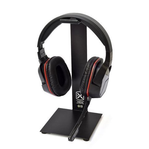 Fejhallgató állvány - asztali, anyaga: acél, fekete színű, mérete 26 × 12 cm (m×sz)