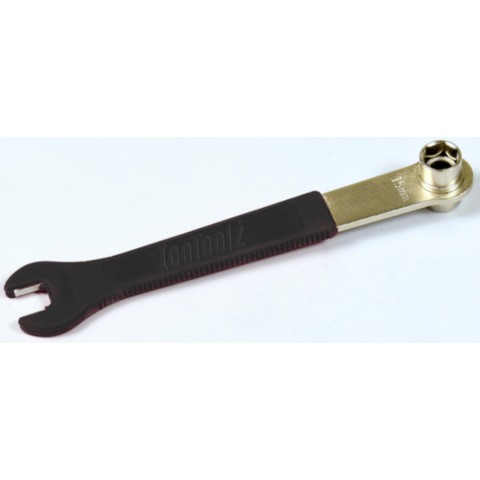 Az egyik végén 15 mm-es pedálkulcs van, a másikon 14/15mm dugókulcs van, ami hatlapfejű hajtókar-csavarok leszedésére való{Kiszerelés:dbSzerszámszabvány:dugókulcs 14 mm dugókulcs 15 mm villáskulcs 15 mm}