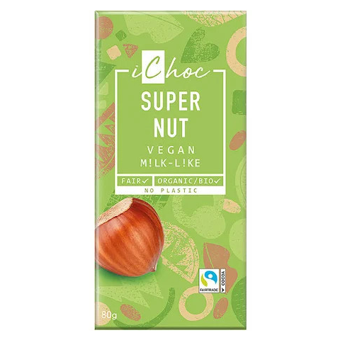 Ichoc bio mandula olajjal készült csokoládé mogyoróval vegán 80 g Összetevők: répacukor*, kakaóvaj* (21%), pirított mogyoró (20%), hajdina liszt*, kakaómassza*(8,8%), tigrisdió liszt*, mandulaolaj* (2%), mogyorómassza*, tengeri só*, bourbon vanília kiv