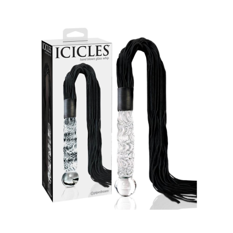 1 kép Icicles No. 38 - bőr korbácsos üveg dildó (áttetsző-fekete)