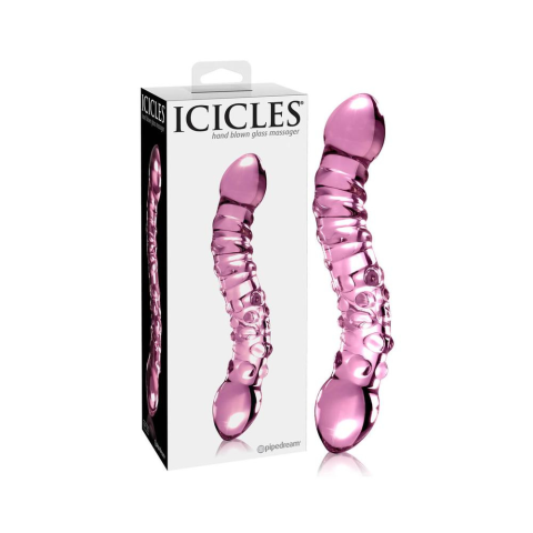 1 kép Icicles No. 55 - kétvégű, G-pont üveg dildó (pink)