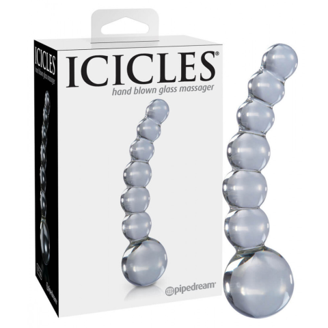 Icicles No. 66 - íves, gömbös, üveg dildó (átlátszó) Termék specifikáció, tulajdonságok: fúvott, vastag üveg anyag szagtalan, bőrbarát íves, G-pont és prosztata stimuláláshoz ideális forma hüvelyi és anális használatra egyaránt használható vízálló könn