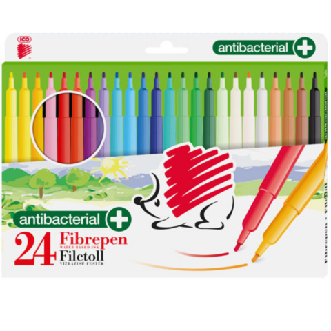 1 kép ICO : Antibakteriális színes 24 db-os filctoll szett