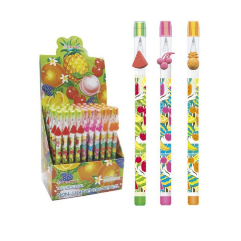 Többféle színű grafitceruzát szerezhetsz most be gyermeked számára és mindezek külseje gyümölcsökkel van tele, hogy vonzóbbá tegye a kicsik számára, sőt kupakja egy radírral is fel van szerelve. Ezek nem akármilyen ceruzák, hanem tolóbetétes kialakítással rendelkeznek, ami azt jelenti, hogy nem kell többet hegyezőt használniu