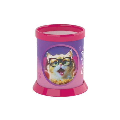A cicás írószertartó tökéletes kiegészítője lehet gyermeked íróasztalának, amely nem csak praktikus, de vidám és színes megjelenésével feldobja a tanulósarkot. Ez a cuki cicás minta garantáltan mosolyt csal mindenki arcára, így még szívesebben fognak nekiállni a házi feladatnak vagy a rajzolásnak. A tartóban kényelmesen elférnek a ceruzák, tollak, radírok és egyéb írószerek, íg