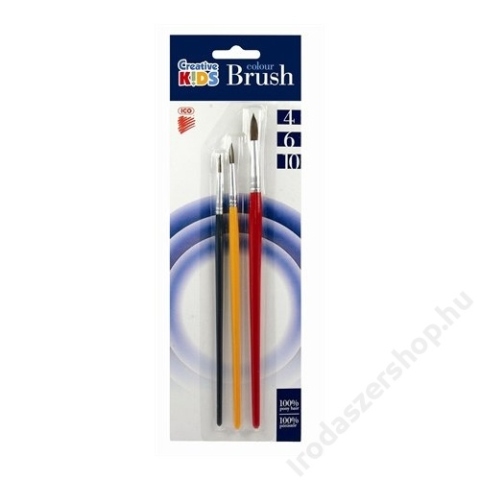 Ecsetkészlet, no. 4-6-10, fa, ICO Creative Kids (TICEV31) pónilószőr ecset festett fanyél 4-6-10-es méret/szett Gyártó/első EU forgalmazó elérhetősége: ICO ZRT 2013 Pomáz, ICO út 5.; EU post@ico.eu www.ico.eu