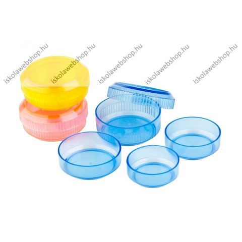Termék leírás: - Műanyag ecsettál készlet. - 5 db-os készlet. - A készlet 5 db azonos színű, egymásba helyezhető ecsettálat tartalmaz. - Áttetsző színekben. - A terméket különböző színben szállítjuk. Ha kifejezetten valamilyen színt szeretne, kérem, a meg