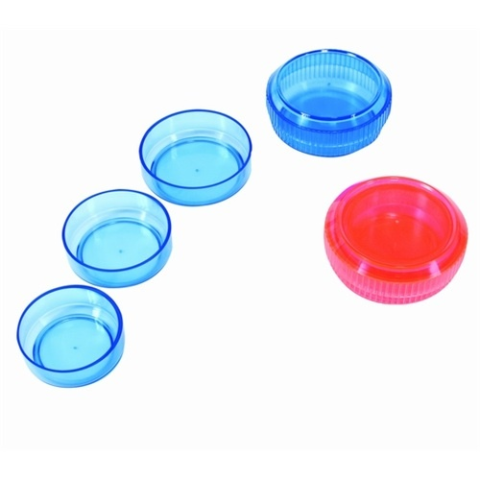 Műanyag ecsettál, 5 db-os készlet, áttetsző színekben.