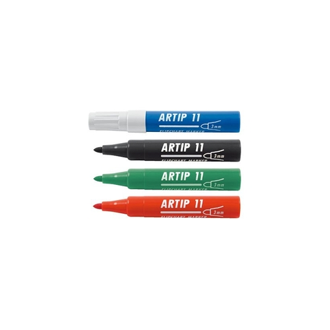 Vízbázisú festékkel töltött marker, flipchart táblák és egyéb papírívek feliratozására. A festék a papír másik oldaláranem üt át. Kerekített illetve vágott csúccsal. Vonalvastagság: 3mm illetve 1-4 mm