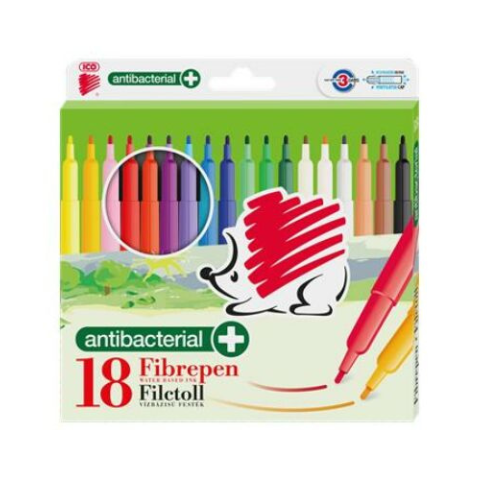 ICO Filctoll készlet, 1 mm, antibakteriális, ICO "Süni 300", 18 különböző szín filctoll, marker termékleírás