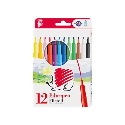 Filctoll készlet, 1 mm, ICO Süni 300, 12 különböző szín - általános használatú rostirón - vízbázisú festékkel töltve - írásra, rajzolásra, színezésre - műanyag test és kupak - vonalvastagság: 1 mm - a termék műanyag alkatrészei 30%-ban újrafelhasznált