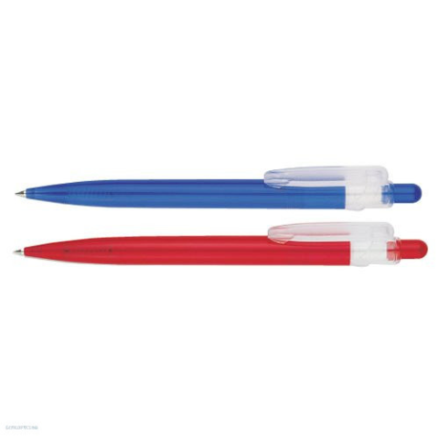 Nyomógombos mechanikával működő golyósirón cserélhető betéttel. Tollteste áttetsző, vidám, 7-féle élénk színben. Feliratozásra kiválóan alkalmas. Íráshossz: 2500 m. Vonalvastagság: 0,8 mm. Betét: 50251.., X20-as. .