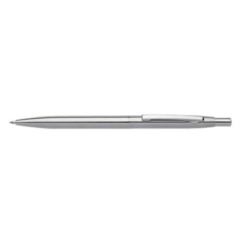 Nyomógombos mechanikával működő golyóstoll, cserélhető nagytartályos golyósbetét. Gravírozható fém tolltest, fém kiegészítők. Írásszín: kék. Vonalvastagság: 0,8 mm. Íráshossz: 5000 m. Betét: 50258.., ICO Silver. .