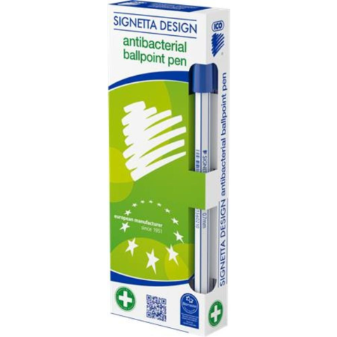 Golyóstoll 0,7 mm, kupakos, antibakteriális, ICO Signetta, kék (TICSIA01) Antibakteriális eldobható golyóstoll biztonsági kupakkal! -a műanyag alkatrészek antibakteriális védelmet adó Biomaster ezüst-ionokat tartalmaznak (biocid hatóanyag: ezüst-foszf