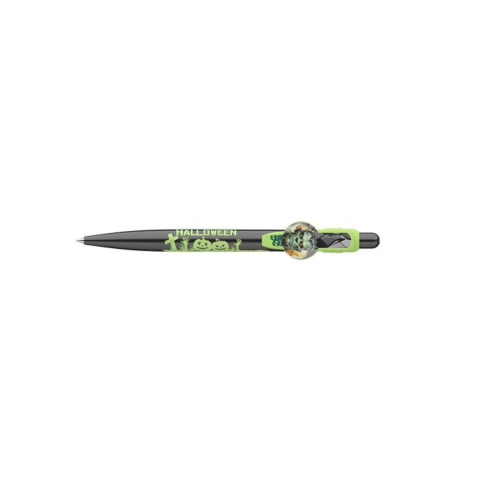 1 kép ICO Golyóstoll, 0,8 mm, nyomógombos, sárgászöld mintás tolltest, ICO "Halloween", kék